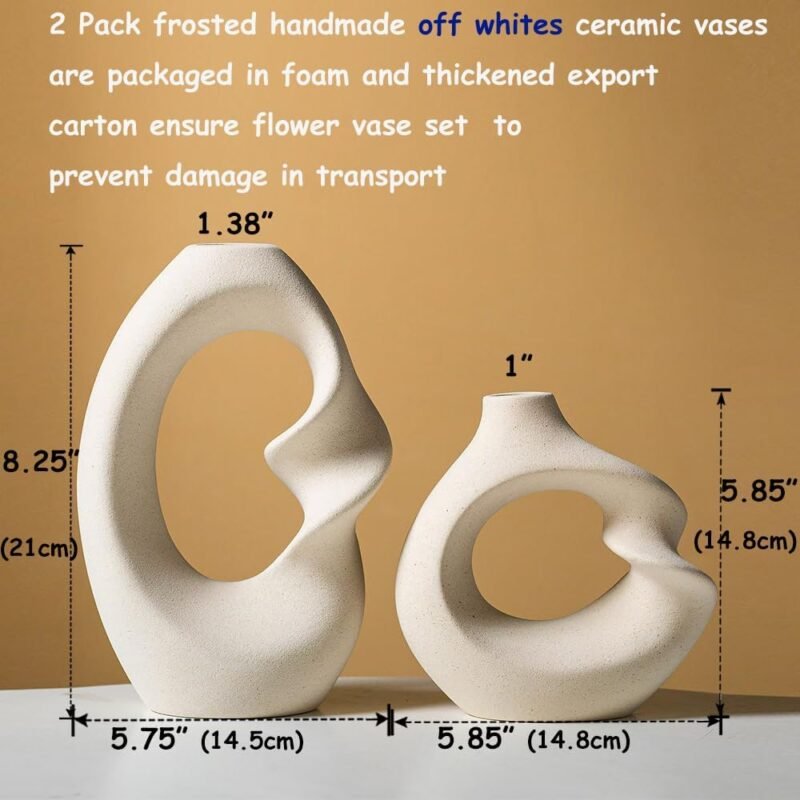 Modern White vase Set of 2,Pampas Grass Ceramic vases for Wedding Party,Aesthetic Flower Vase for Home Decor,Kitchen Tables,Living Room,Bedroom,Console,Wooden Shelf,Office,Coffee Decoration(2 Pcs)