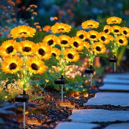 Solar Lights Outdoor Garden Decor,4 Pack with 24 Sunflower Lights,Solar Flowers Lights Waterproof,Birthday Gifts for Mom Women Grandma,Outside Decorative Stakes Light for Landscape Yard Patio Lawn