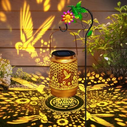 Solar Lanterns Outdoor Waterproof with Shepherd Hook,Hummingbird Garden Decor Christmas Decorations Birthday Gifts for Women Mom,Hanging Solar Lights Metal Bird Decorative for Yard,Patio,Porch,Lawn