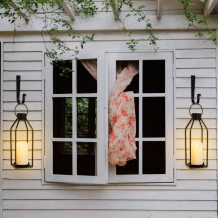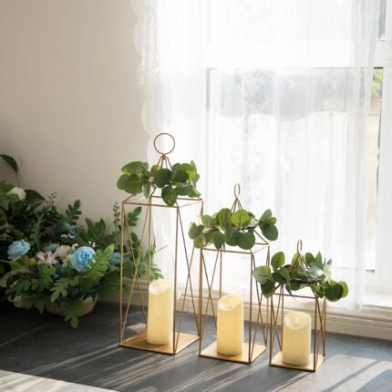 HPC Decor Tall Metal Lantern Decor Set of 3-24″ 19″ 13″ Elegant Decorative Lanterns with Garlands-Modern Gold Candle Lanterns for Garden Porch Decor,Indoor/Outdoor for Wedding Décor,Party,Home Decor.