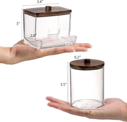 Tbestmax Qtips Holder Bathroom Container, 10/7 OZ Cotton Ball/Swabs Dispenser, Apothecary Jar Organizer for Storage Brown Wood Lids
