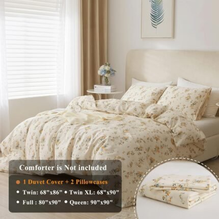 VM VOUGEMARKET Floral Bedding Twin Reversible Gray Beige Flower Duvet Cover Set,Cottagecore Duvet Cover Matching 2 Pillowcases 100% Cotton Chic Girls Bedding Set -Twin(68″x86″)