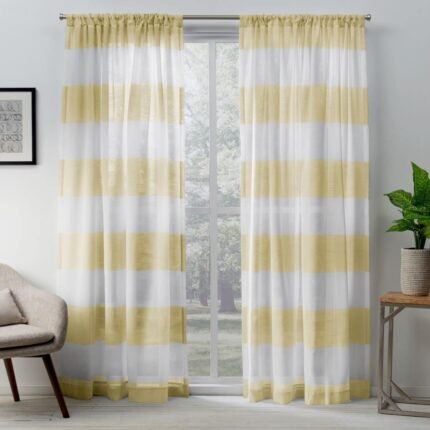 Exclusive Home Darma Sheer Linen Rod Pocket Curtain Panel Pair, 50″x96″, Yellow