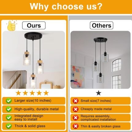 Pendant Lights Kitchen Island, 3-Light Industrial Black Ceiling Pendant Light Fixtures, Farmhouse Kitchen Island Lighting, Modern Hanging Pendant Light Fixture for Dining Room Bedroom Foyer Entryway