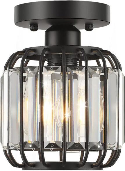 Small Semi Flush Mount Ceiling Light Fixture, Modern Black Crystal Ceiling, Small Hallway Light Fixtures, Entryway Light Fixture for Kitchen Hallway Foyer Dinning Room (Black)