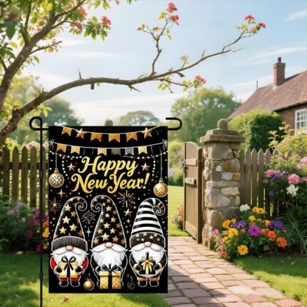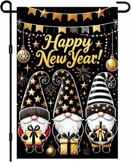 IVN Happy New Year Garden Flag 12×18 Inch Gnome Design Festive Celebrations Holiday Outdoor Decor Double Sided Seasonal Welcome Garden Flag for Yard Home Porch Patio Lawn Decorations