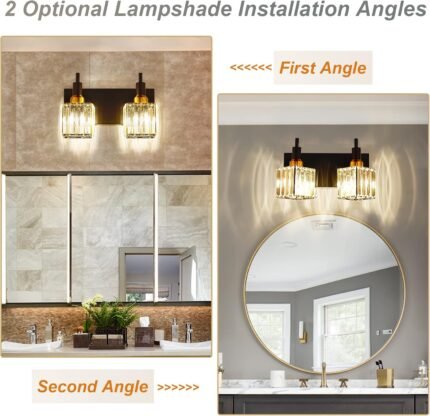 Modern Crystal Bathroom Vanity Light 2-Lights Black and Gold Bathroom Light Fixtures Over Mirror Bath Wall Sconce Lighting with Adjustment Angle