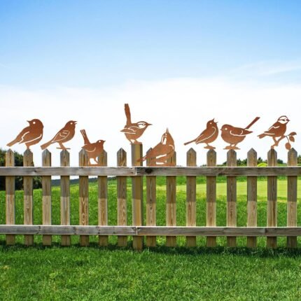 Vintage Rusty Bird Decor – 8Pcs Rusty Metal Iron Retro Cardinal Bird Statues Outdoor Spring Decorations for Garden Patio Yard Art Rustic Silhouette Christmas New Year Farmhouse Ornaments
