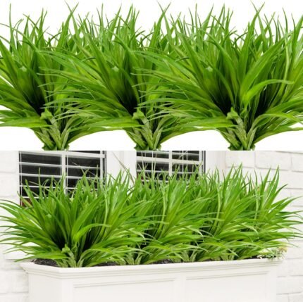 8Pcs Artificial Grass Plant Fake Outdoor Plastic Plants UV Resistant Faux Grasses Greenery Shrubs for Window Box Garden Patio Porch Home Decor Rose Green