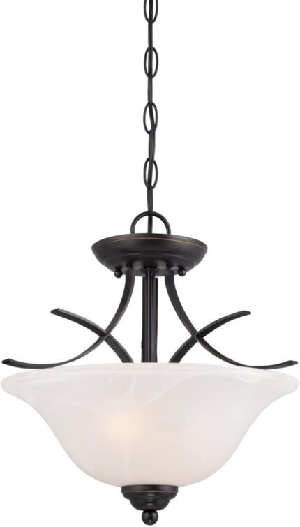 Westinghouse 6340300 Pacific Falls Two-Light Indoor Convertible Pendant/Semi-Flush Ceiling Fixture, Amber Bronze Finish with White Alabaster Glass