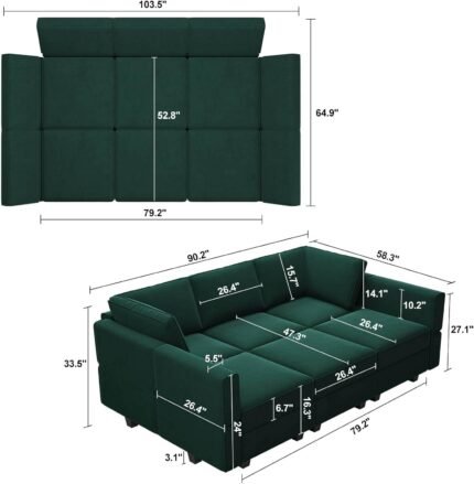 Belffin Modular Velvet Sectional Sofa with Chaise Lounge Sectional Sleeper Sofa with Storage Chaise Bed Couch for Living Room Green