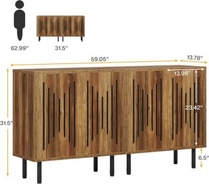 Tribesigns Set of 2 Sideboard Buffet with Storage, 59″ Buffet Sideboard Cabinet with Adjustable Shelves, Accent Storage Cabinet for Living Room, Rustic Brown