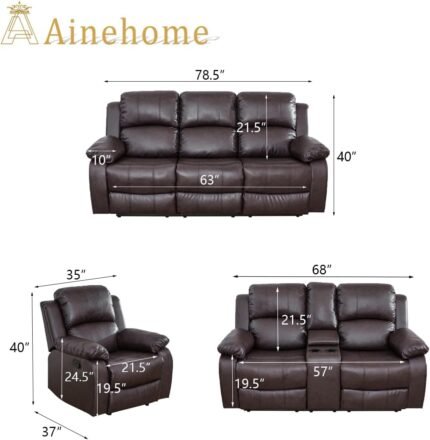 A Ainehome Living Room Furniture Set Leather Recliner Sofa Set Loveseat Chair Furniture Sofa Set for Living Room/Small Space/Rv/House/Office/Theater Seating (A-Brown Leather, 3 Piece Set)
