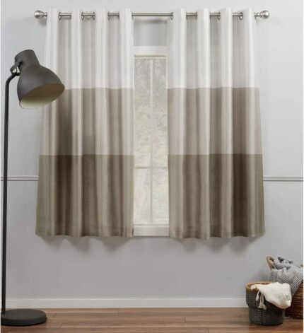 EXCLUSIVE HOME Chateau Striped Faux Silk Grommet Top Curtain Panel Pair, 54″x63″, Taupe
