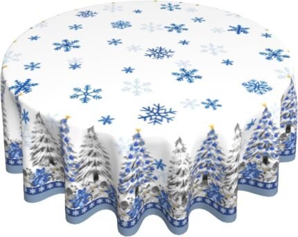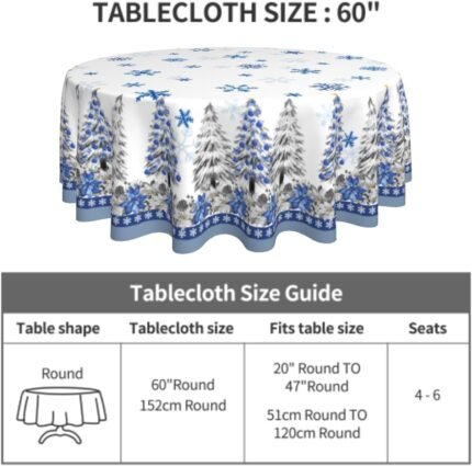 Giwawa Christmas Tablecloth Round 60Inch Blue Xmas Trees Poinsettia Floral Table Cloth Winter Snowflakes Washable Table Cover for Kitchen Dining Holiday New Year Picnic Party Decor