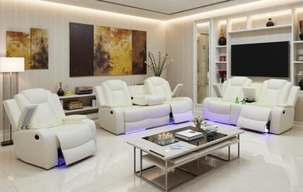 Modern Power Sectional Recliner Sofa with LED Light, Living Room Furniture Sets, Power Reclining Sofa Set with 5 Recliner Seats/Cup Holders & Storage Console for Home Theater/Living Room