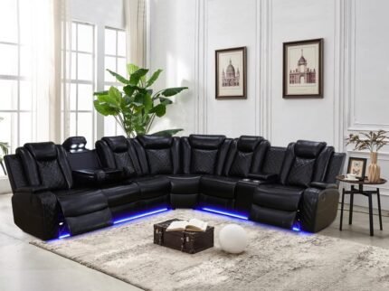 Power Recliner Sectional Sofa Set,Living Room Furniture Sets,Black Leather Sectional Reclining Couch Power Reclining Sofa with LED Light/Storage Console for Living Room