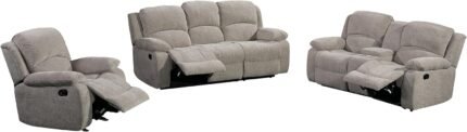 3 Seater Recliner Sofa Set with 2-Tier Cushion, 3+1 Pieces in Living Room, 3 Seater Reclining Couch Velvet Fabric with Removable Console, 1 Oversize Recliner Chair Sofa Seat – Grey