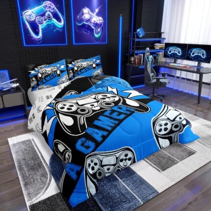 Erosebridal Twin Comforter Set for Boys Girls Kids, Gamer Comforter Set for Boys Teens, Gaming Console Bedding Decor Blue Black 2Pcs