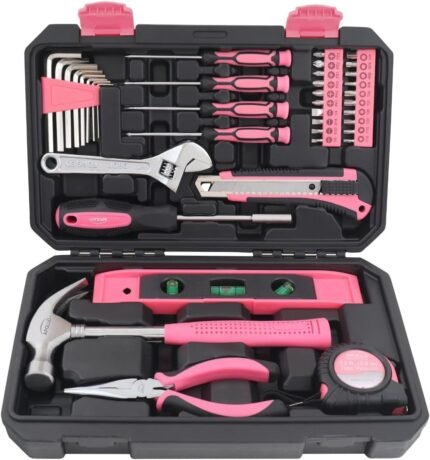 Apollo Tools Original 39 Piece General Household Tool Set in Toolbox Storage Case with Essential Hand Tools for Everyday Home Repairs, DIY and Crafts – Pink Ribbon – Pink – DT9706P