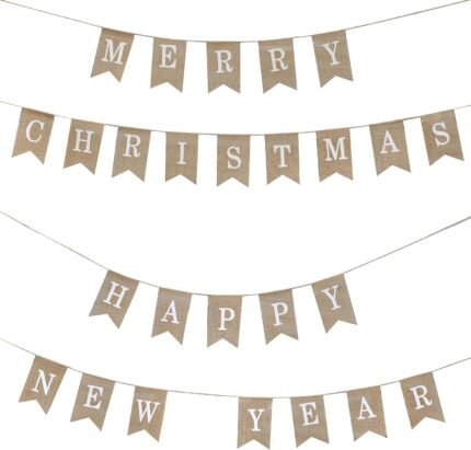 Mandala Crafts Merry Christmas Burlap Banner Garland – Merry Xmas Vintage Christmas Decor Sign for Fireplace Mantel – 2025 Happy New Years Banner Party Decoration
