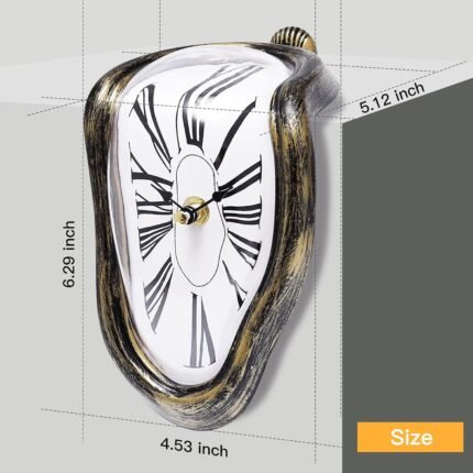 Melting Clock Dali Melted Clock Gift Decor Art Inspired Wall Clock Twisted Shelf Hanging Surrealist for Decorative Shop Office Home Desk Roman Antique Gold…