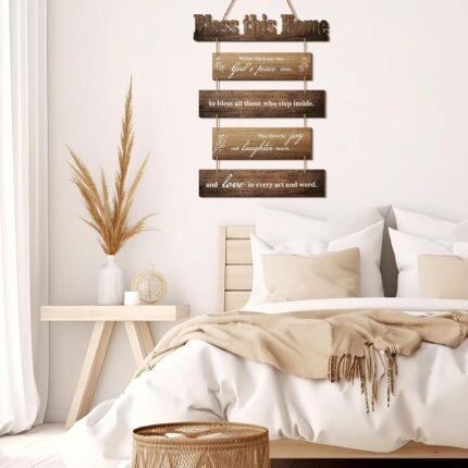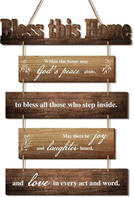 Xuhal Bless This Home Wall Decor Religious House Warming Gift Farmhouse Wooden God Sign Wood Rustic Blessing Plaque for Bedroom Living Room Kitchen Wall Art Holy Week Decor(Brown)