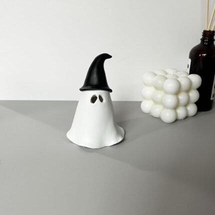 Halloween Ghost Statue Decor, 4″ Incense Holder Cone Burner Mini Smoking Ghost Resin Ornament for Home Indoor Desktop Decoration for Yoga Lover Stress Anxiety Relief (Witch Hat Ghost)