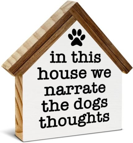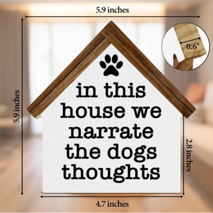 Dogs Sign Decor in This House We Narrate the Dogs Thoughts Wood Block Sign Home Decor Dog House Shape Wooden Sign Living Room Desk Shelf Tiered Tray Decoration