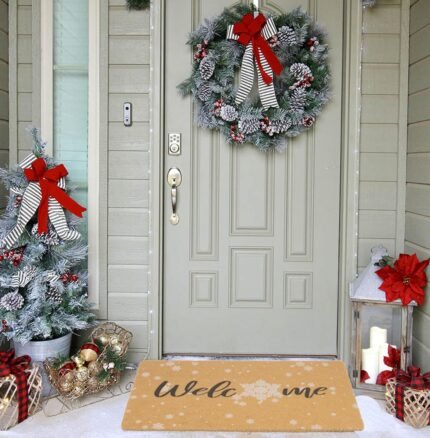 Winter-Welcome-Doormat Outdoor-Entrance – Non-Slip Artificial-Coir-Snowflake-Seasonal-Home Decor Front Door Mats 17 x 29 Inch
