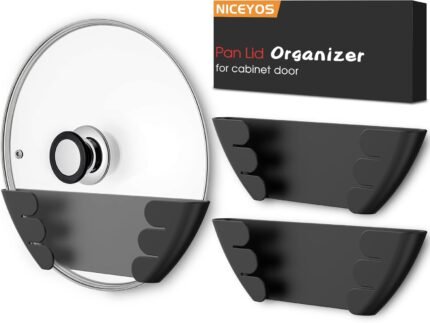 Universal Pot Lid Organizer for Cabinet – Upgraded Patented Niceyos 3 Pack Inside Cabinet Door Wall Mount Pan Top Storage Organizer Rack Holder for Kitchen, Fits 6″ to 13″ (Black)