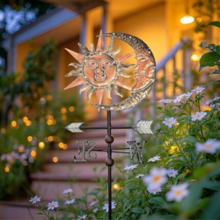 TERESA’S COLLECTIONS Sun & Moon Face Solar Outdoor Lights, Metal Decorative Stake Weathervane Garden Decor for Outside, Yard Decorations Outdoor Lawn Ornaments for Porch Decor Gifts for Mom, 34″