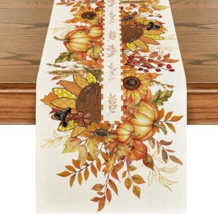Artoid Mode Sunflower Turkey Leaves Thanksgiving Table Runner, Harvest Fall Autumn Kitchen Dining Table Decoration for Home Party Decor 13×108 Inch
