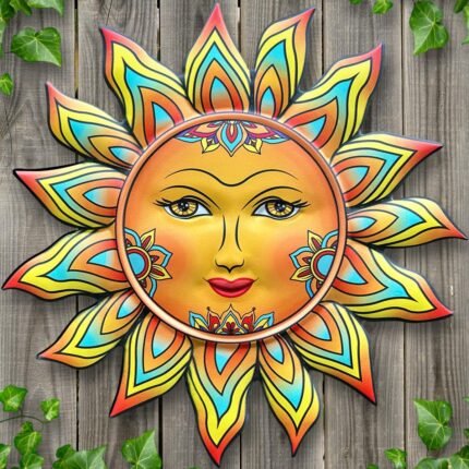 Metal Sun Flower Wall Decor – 13 inches Sun Wall Art Hanging Decorations for Outdoor, Home Garden Yard Patio Fence Bedroom Decor, Gifts for Mom Friends