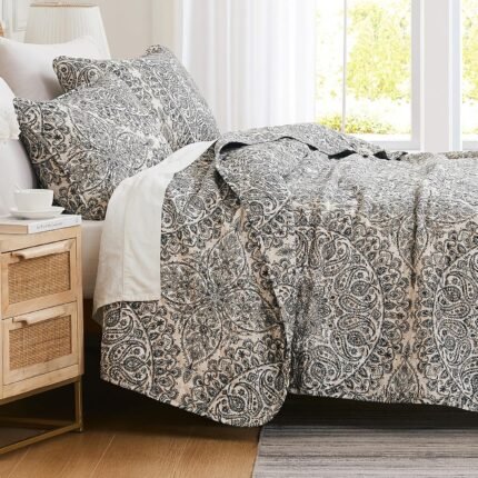 Southshore Fine Living, Inc. Ashanti Collection Oversized King Quilt Bedding Set, Soft Fabric, Lightweight Bedspread 3-Piece, Two Matching Shams (108 in Wide x 98 in Long), King/California Size, Grey