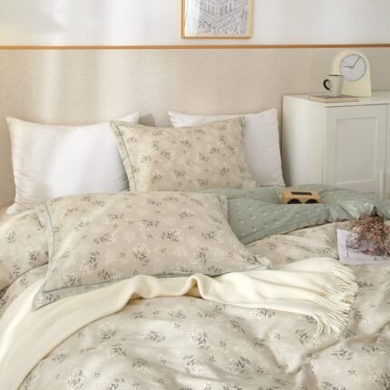 VM VOUGEMARKET Floral Bedding Twin Reversible Gray Beige Flower Duvet Cover Set,Cottagecore Duvet Cover Matching 2 Pillowcases 100% Cotton Chic Girls Bedding Set -Twin(68″x86″)