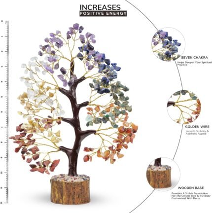 YATHABI 7 Chakra Tree of Life Decor – Crystal Tree – Feng Shui Decor – Crystal Bonsai Tree – Gem Tree – Gemstone and Crystals – Spiritual Tree – Chakra Stones – Crystal Gifts – Birthday Gift for Women