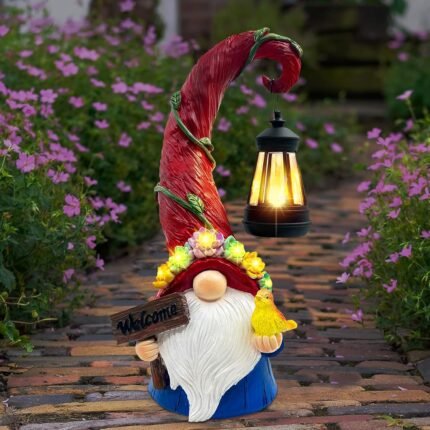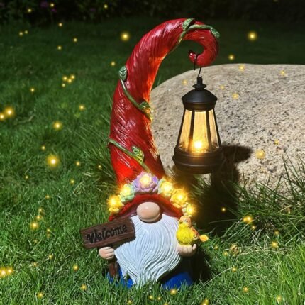 Gnome Garden Decor Statue Solar Gnomes Decorations for Yard with Lantern Light Outdoor Decorations for Patio Mom Gift