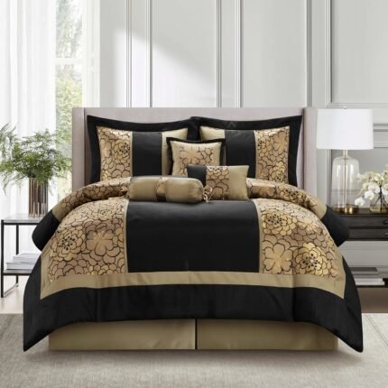 Stratford Park Black and Gold Comforter Sets for King Bed, 7 Piece, Home Decor, Premium Lightweight Microfiber, Matching Bedskirt, Pillows & Shams