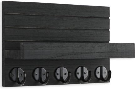 Key Holder for Wall, Decorative Key and Mail Holder with Shelf Has Large Hooks for Bags, Coats, Umbrella – Paulownia Wood Key Hanger with Mounting Hardware (9.8”W x 6.7”H x 4.2”D)