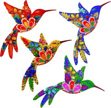 Outdoor Metal Wall Art Garden Decor for Outside Colorful Hummingbird Fence Art – (Set of 4,ColorF)