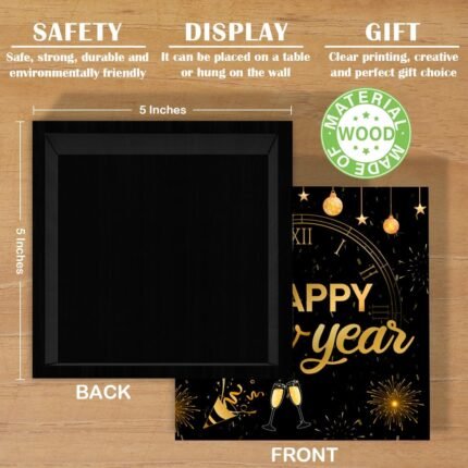Happy New Year Decorations Gold Black Wooden Box Sign Happy New Year Party Decor for Home Room Shelf Table Desk Indoor Decor 5 x 5 Inches