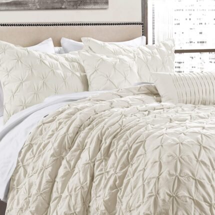 Lush Decor Ravello Pintuck Comforter Set – Luxe 5 Piece Textured Bedding Set – Traditional Glam & Farmhouse Inspired Bedroom Decor – King, Ivory