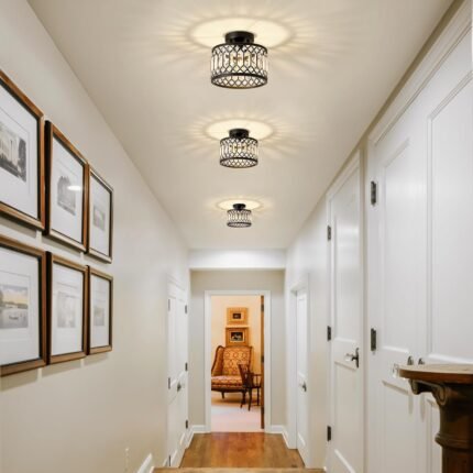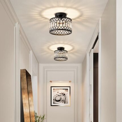 Crystal Ceiling Light Fixture, Modern Semi Flush Mount Ceiling Light, Black Lighting Fixtures Ceiling Lamp for Hallway, Kitchen, Entryway, Bedroom, Laundry Room, 9.05 Inch