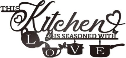 Black Metal Kitchen Wall Art This Kitchen is Seasoned with Love Black Kitchen Signs Wall Decor Cute Kitchen Wall Decor Sign Farmhouse Dining Room Decoration (Relaxing)