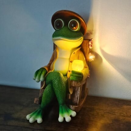 Solar Garden Statue Outdoor Decor Frog Figurine Art with Solar Lantern Loving Frog for Patio Balcony Yard Lawn Unique Gift for Woman Mom Grandma and Frog Lover