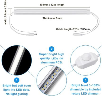 Litever Kitchen Under Cabinet LED Lighting Kit, Super Bright, 6 PCS 12 Inches Light Bars, Plug-in or Hardwire Power Adapter, 31W 2000 Lumen, for Cabinet Counter Shelf Workbench (Daylight White 5000K)