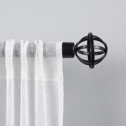 Exclusive Home Jetson 1″ Curtain Rod and Coordinating Finial Set, Matte Black, Adjustable 66″-120″