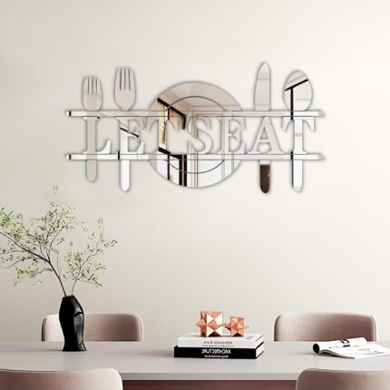 Let’s Eat Wall Decor Letter Signs Acrylic Mirror Wall Decals Decorations Stickers for Kitchen or Dining Room (Silver 26.3 X 13.2)