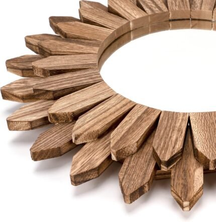 Honiway Wall Mirror Decorative 12 inch Rustic Wood Mirror Sunburst Boho Mirror for Entryway Bedroom Living Room Bathroom House Warming Gifts New Home Essential Carbonized Black